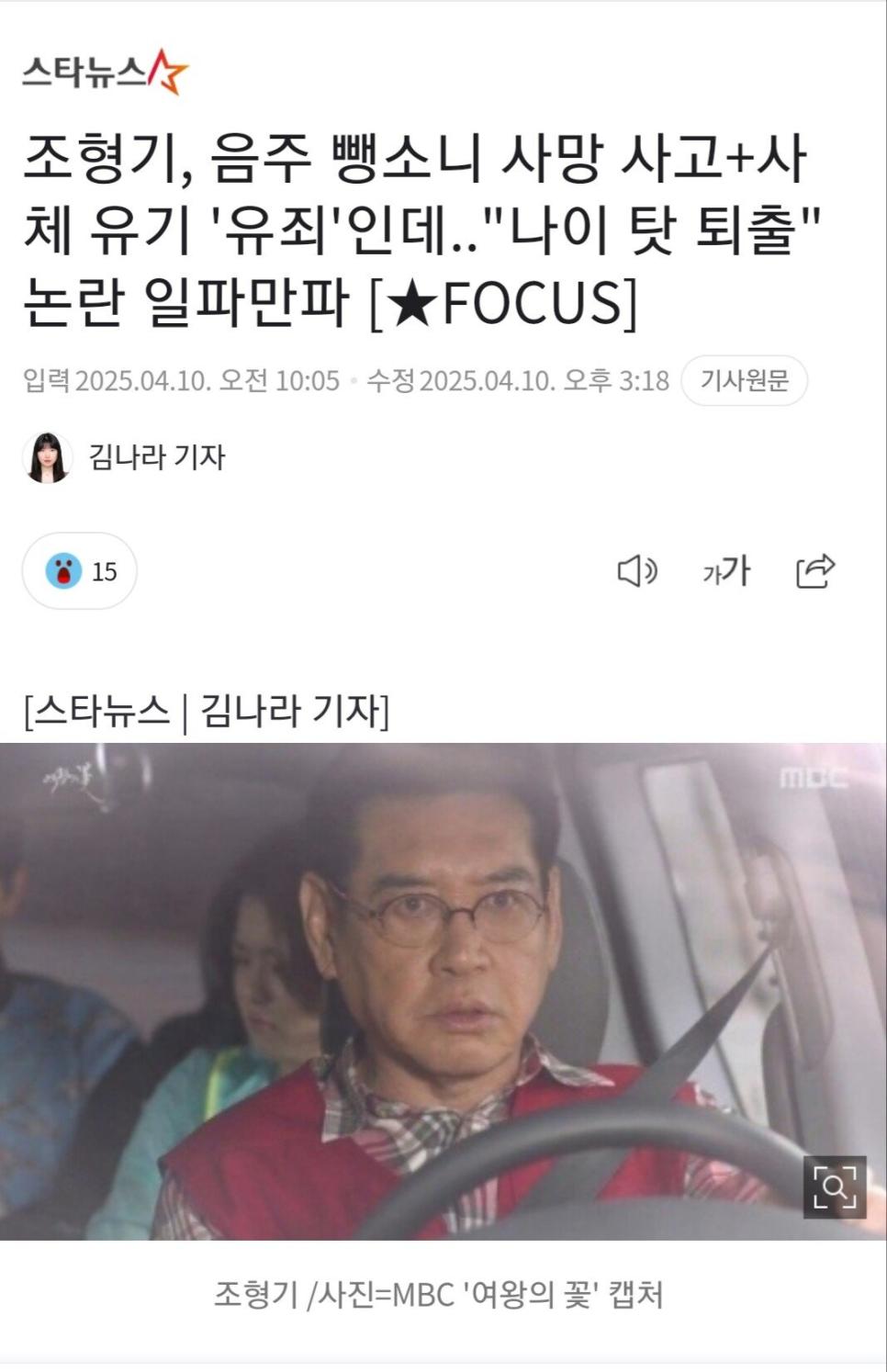 조형기 "나는 나이많아서 방송에서 퇴출"