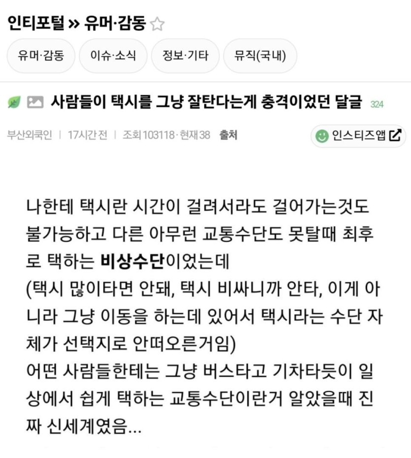 사람들이 택시 그냥 타는게 충격이라는 인티녀