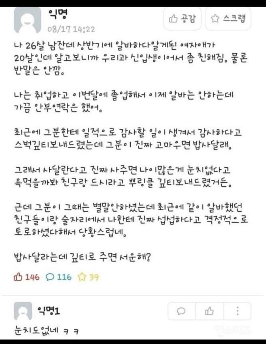 여자후배가 밥 사달라고 했는데 기프티콘 보냄.jpg