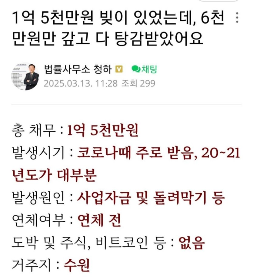 따갚되 도박충이 계속 나오는 이유.jpg rh1 0 90 0 2025.04.11 01:30 개인회생 제도가 있기때문회생톡방만 들어가도 80프로가 도박빚이고대부분 60퍼 이상 탕감 받고 제대로 안갚기때문에한탕 노리는 애들이 자꾸 생기는거 같음마지막 여자는 빚 1억4천 월급 200인데36개월동안 매달 30만원씩 갚으려고 하는거 0