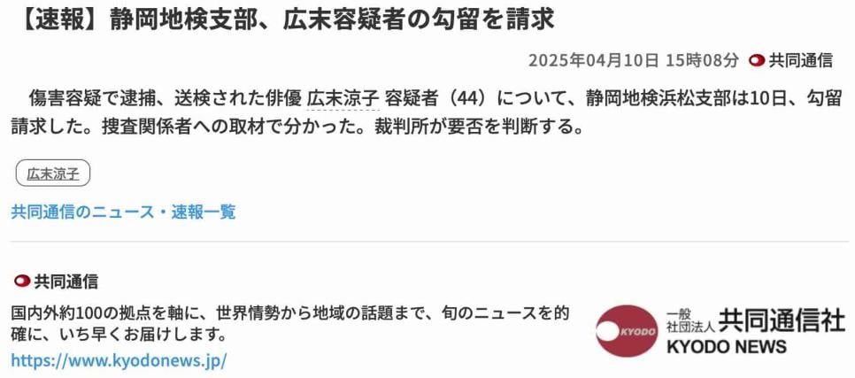 [속보] 일본검찰, 히로스에 료코 구속영장 청구