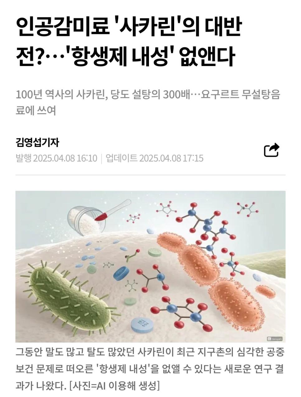 현재 난리났다는 인공감미료 사카린 연구결과 근황 rh1 0 103 0 2025.04.10 10:45 항생제 먹다보면 항생제에 내성이 생기는데내성이 생겨버리면 항생제 효과가 약해짐근데 그걸 사카린이 없앤다고 함 ㄷㄷㄷ 0