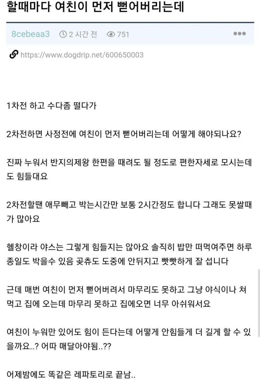 할때마다 여친이 먼저 뻗어버리는데