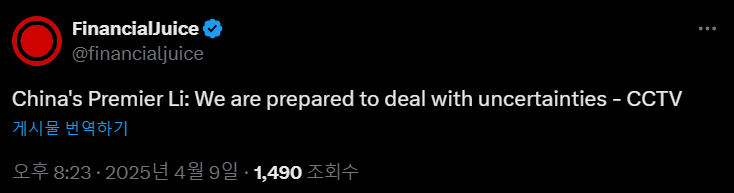 중국 "우리는 불확실성에 대비가 되었다."