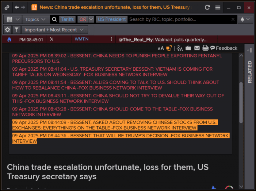 속보) 미국, 거래소에 상장된 중국주식 상폐 검토. jpg rh1 0 91 0 2025.04.09 22:00 폭스뉴스 : 미국 거래소에서 중국 주식을 철수하는 것에 대해 재무부 장관 베센트 : 모든 것이 검토 중입니다. 그건 트럼프 대통령의 결정입니다. 0