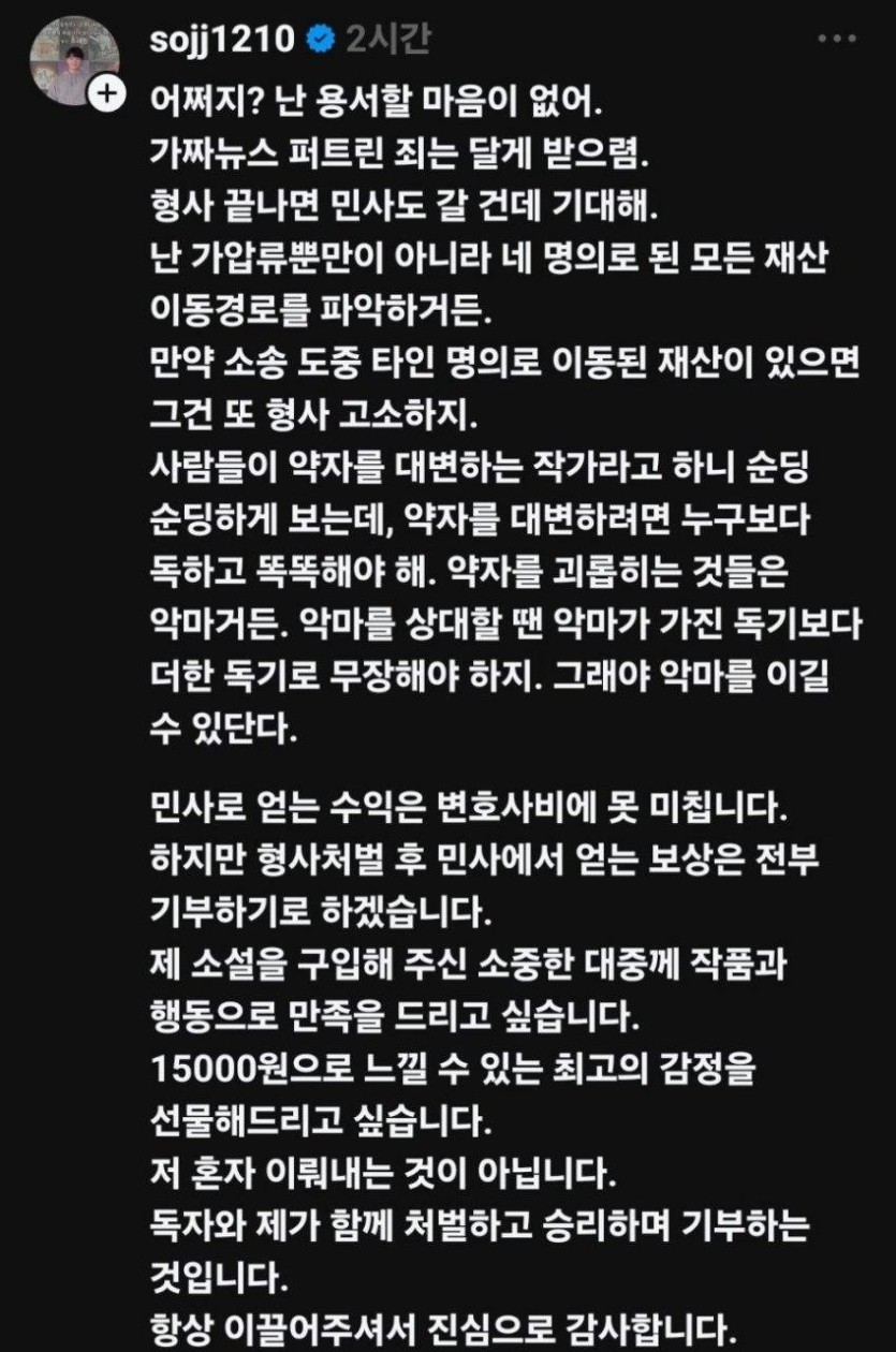 탄핵 찬성했다고 악플테러받은 작가들 근황 rh1 0 90 0 2025.04.09 15:45 <"안녕자두야" 이빈작가> <소재원 작가> 금융치료 씨게 받아야 다시는 저런짓거리 못하지 0