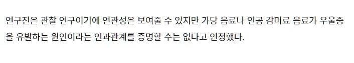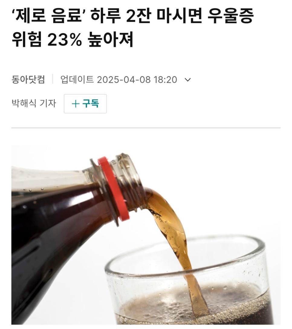 제로콜라 마시면 우울증 위험 23% 증가한다!