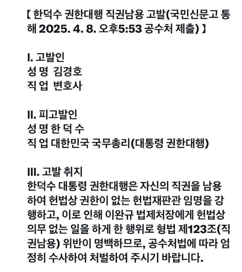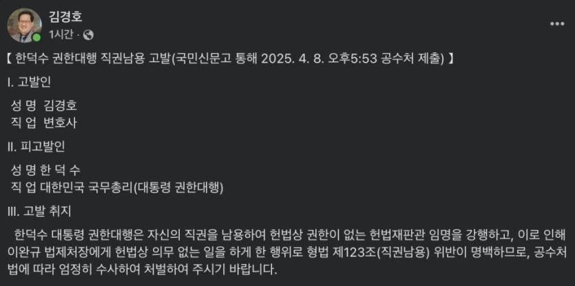 김경호 변호사, 한덕수 직권남용 고발 .jpg