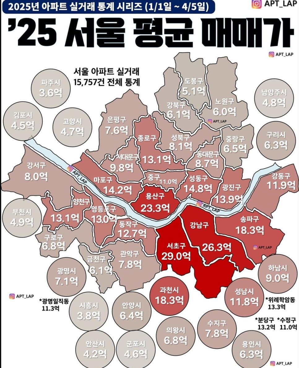 펌) 2025년 1분기 서울 아파트 평균 매매가