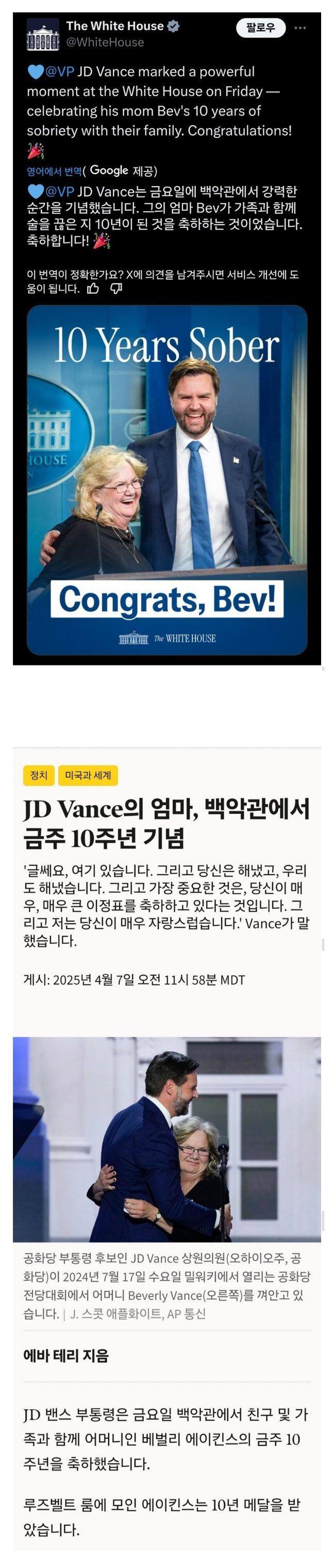 부통령 애미 금주 10주년 축하파티함