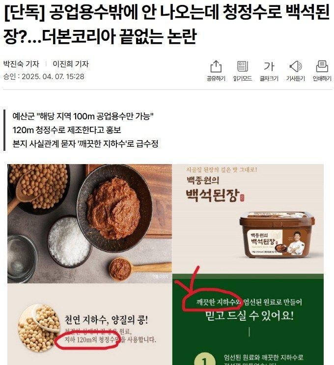 백종원의 더본코리아 공업용수 나오는 곳 물로 된장 만든 논란
