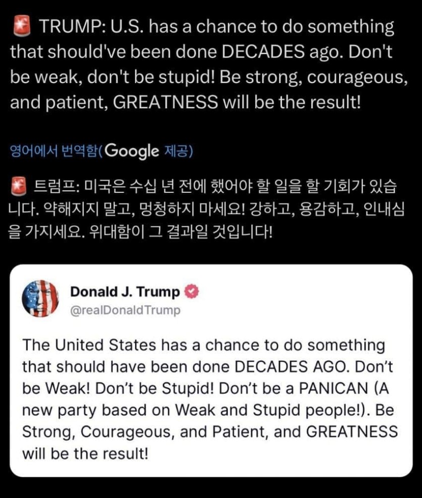 속보) 트럼프 "멍청하게 나대지 말고 쫌 참아라"