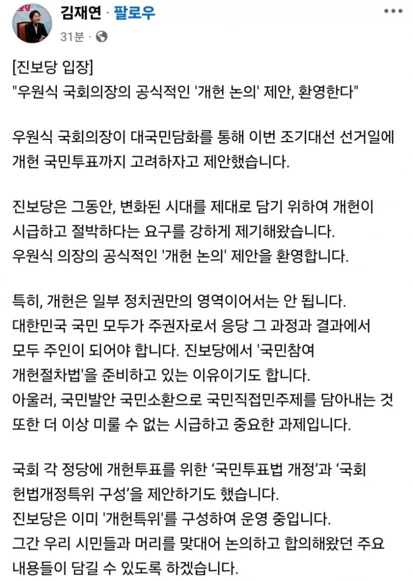 진보당 개헌 논의 환영