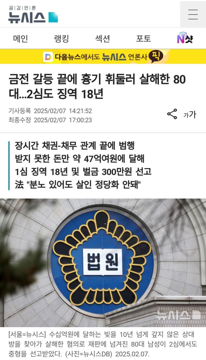 47억 빌려간 채무자 살해... 징역 18년