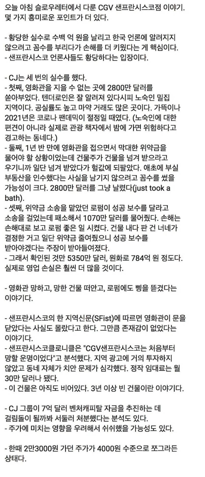 미국에서 784억 날린 CGV