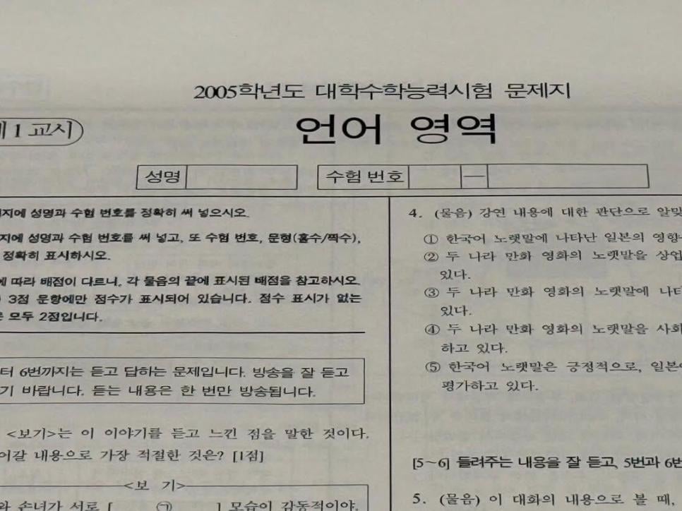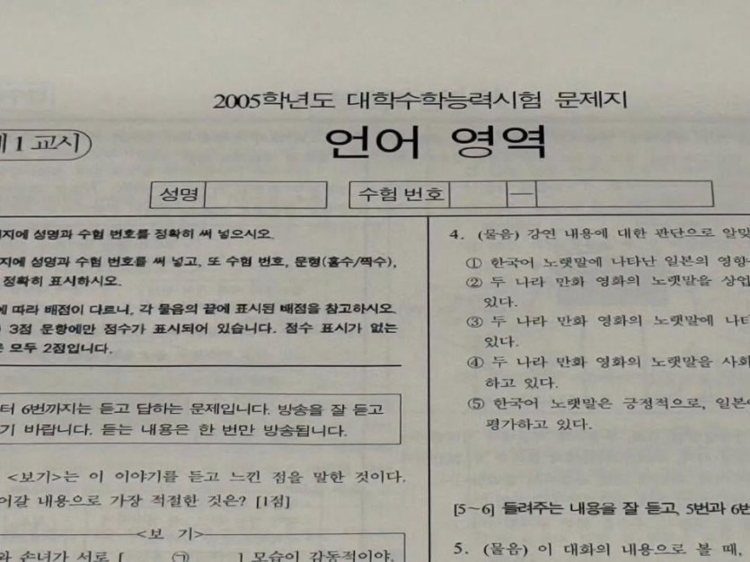 국립 민속 박물관에 05년도 수능시험지가 전시되어 있음