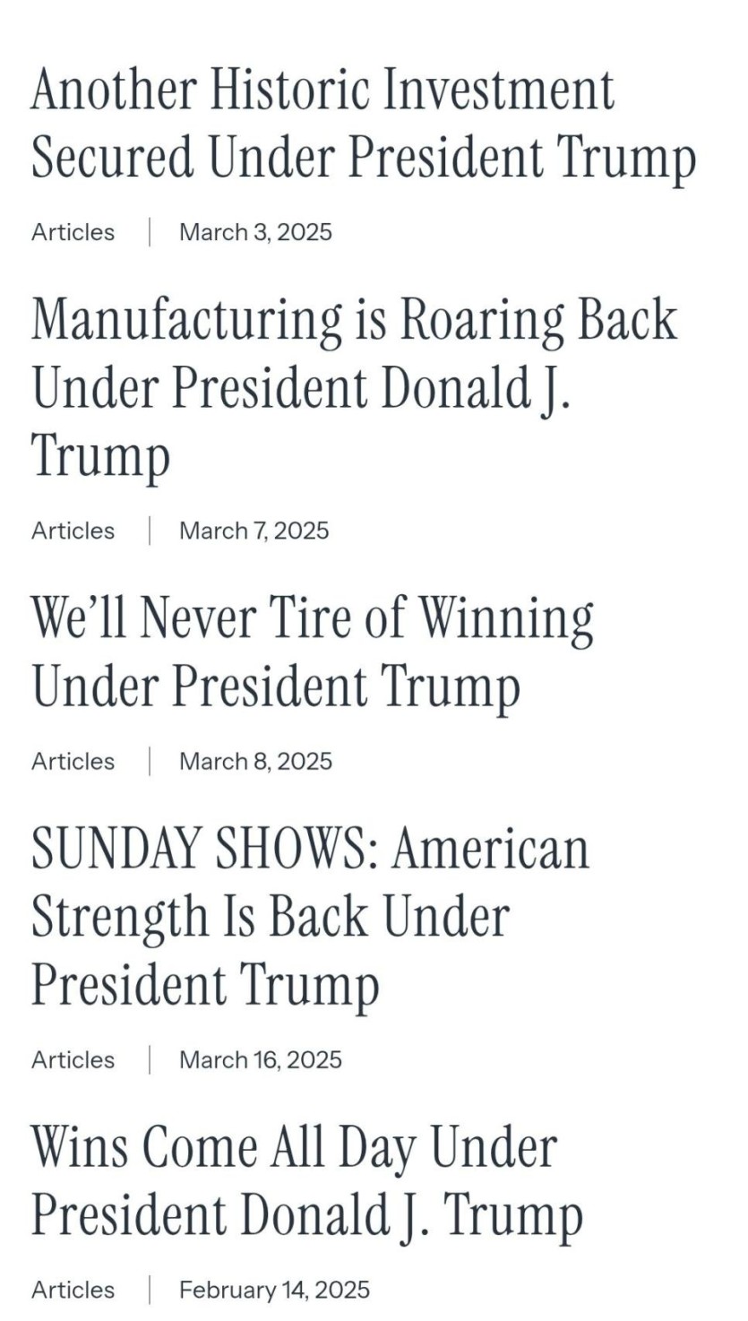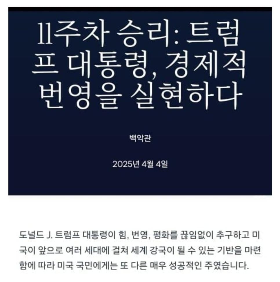북한화된 백악관 공식 홈페이지.jpg rh1 0 162 0 2025.04.06 23:00 위대한 트럼프 령도자 지휘 아래 승리를 이어나가는 중...단어 선택이 독재자 빠는 수준으로 바뀜https://www.whitehouse.gov/articles/ 미국 내에서도 북한이냐고 비판 나오는 중 0