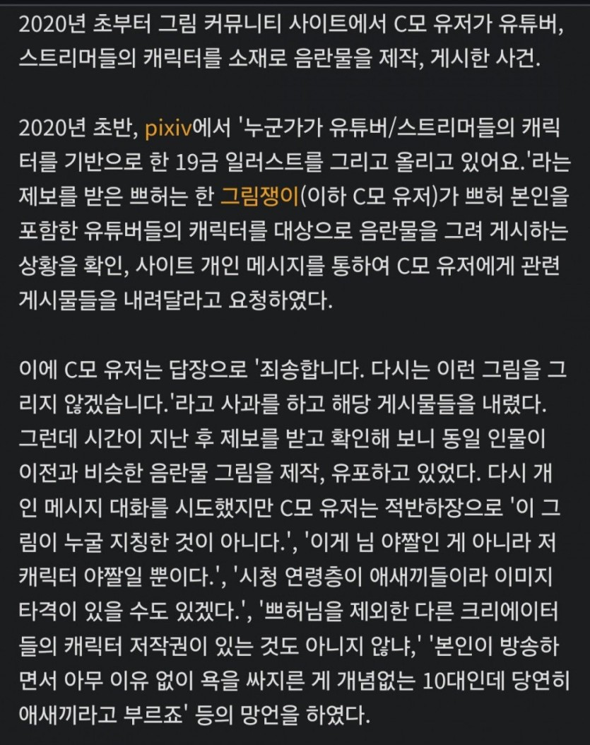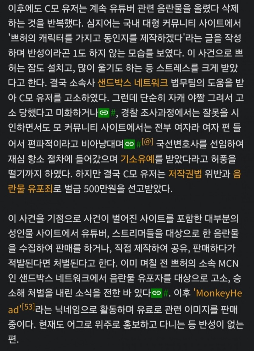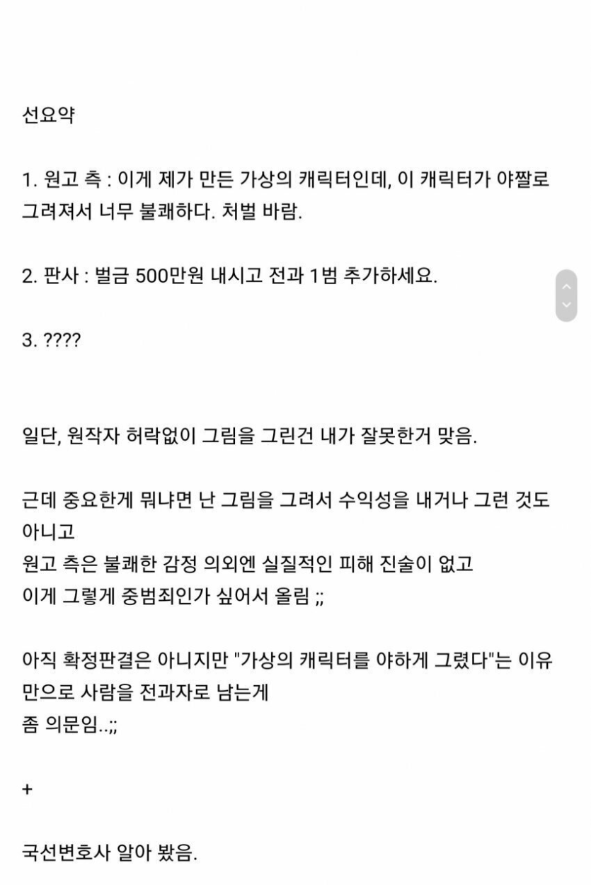 버튜버에 고소당해 500만원 벌금형을 받았던 사건 rh1 0 177 0 2025.04.06 20:15 진상은 https://namu.wiki/w/%EC%81%98%ED%97%88/%EC%82%AC%EA%B1%B4%20%EC%82%AC%EA%B3%A0?uuid=1bf299fb-dd21-4c08-8c6e-d237fc287834#s-3 유죄엔딩 버튜버에 고소당해 500만원 벌금형을 받았던 사건 0
