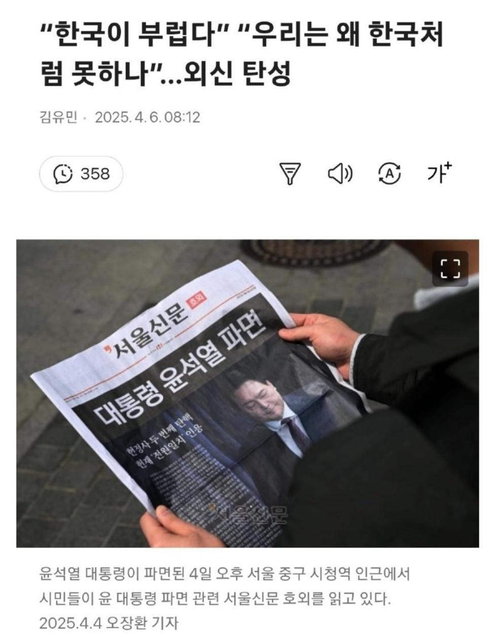 외신 "한국이 부럽다"기사..