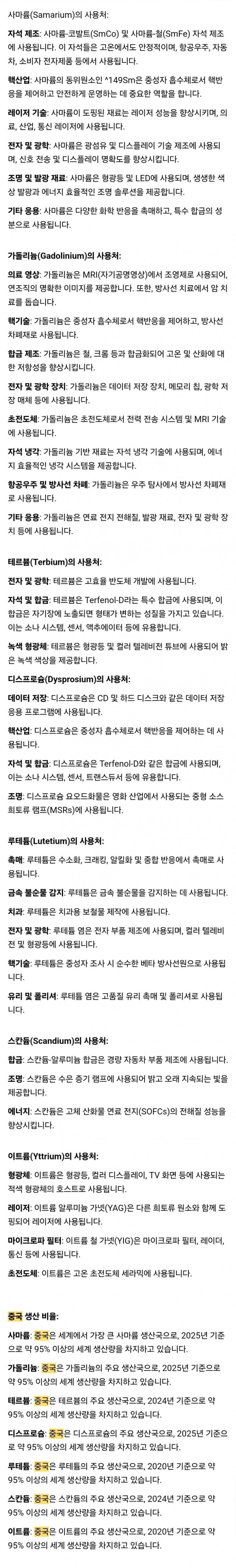 오늘자 중국이 걸은 수출제한 목록 ㄷㄷ