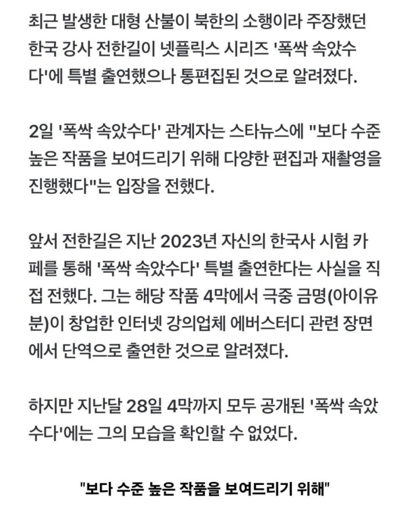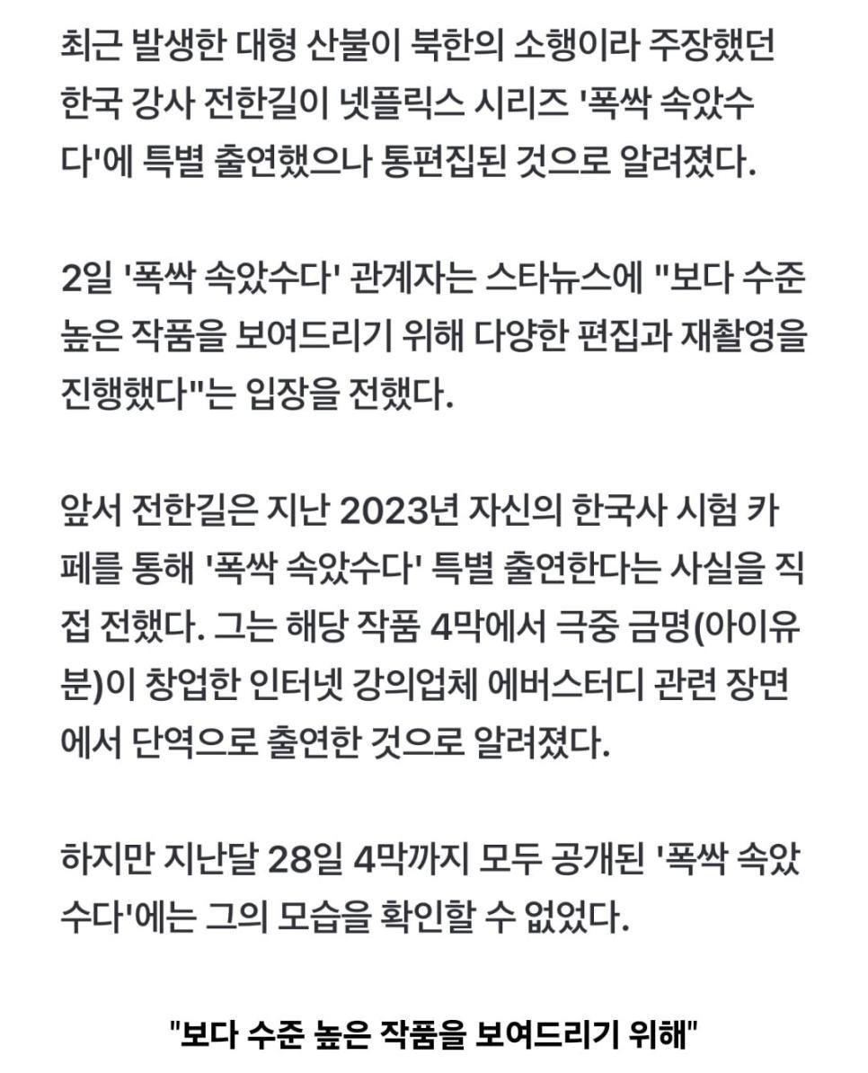 전한길 폭싹 속았수다 특별출연 통편집 이유..Jpg