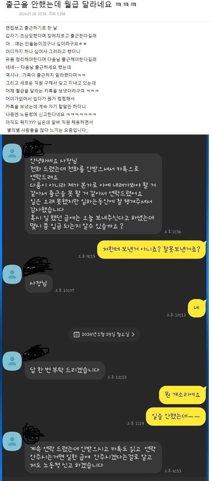하루도 출근을 안 했는데 월급 달라고하는 알바생