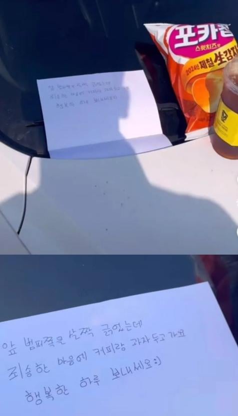 어느 차주가받은 사과쪽지와간식