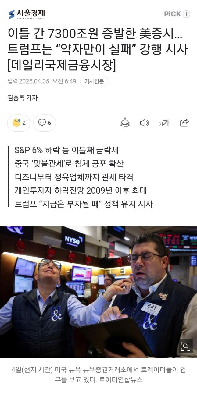 이틀 간 7천3백조 증발. 트럼프 "오직 약자만이 실패"