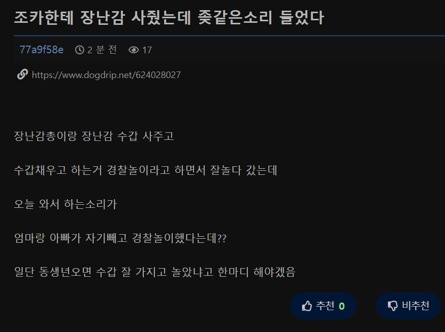 조카한테 장난감 사주고 조카생기는 소리를 들은 분