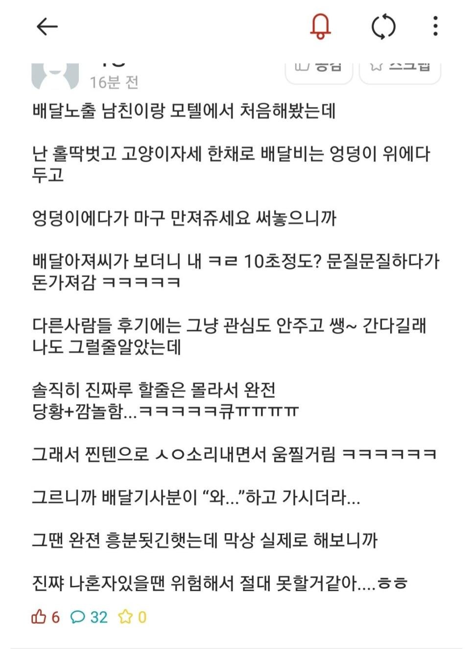 배달원 앞에서 노출한 후기