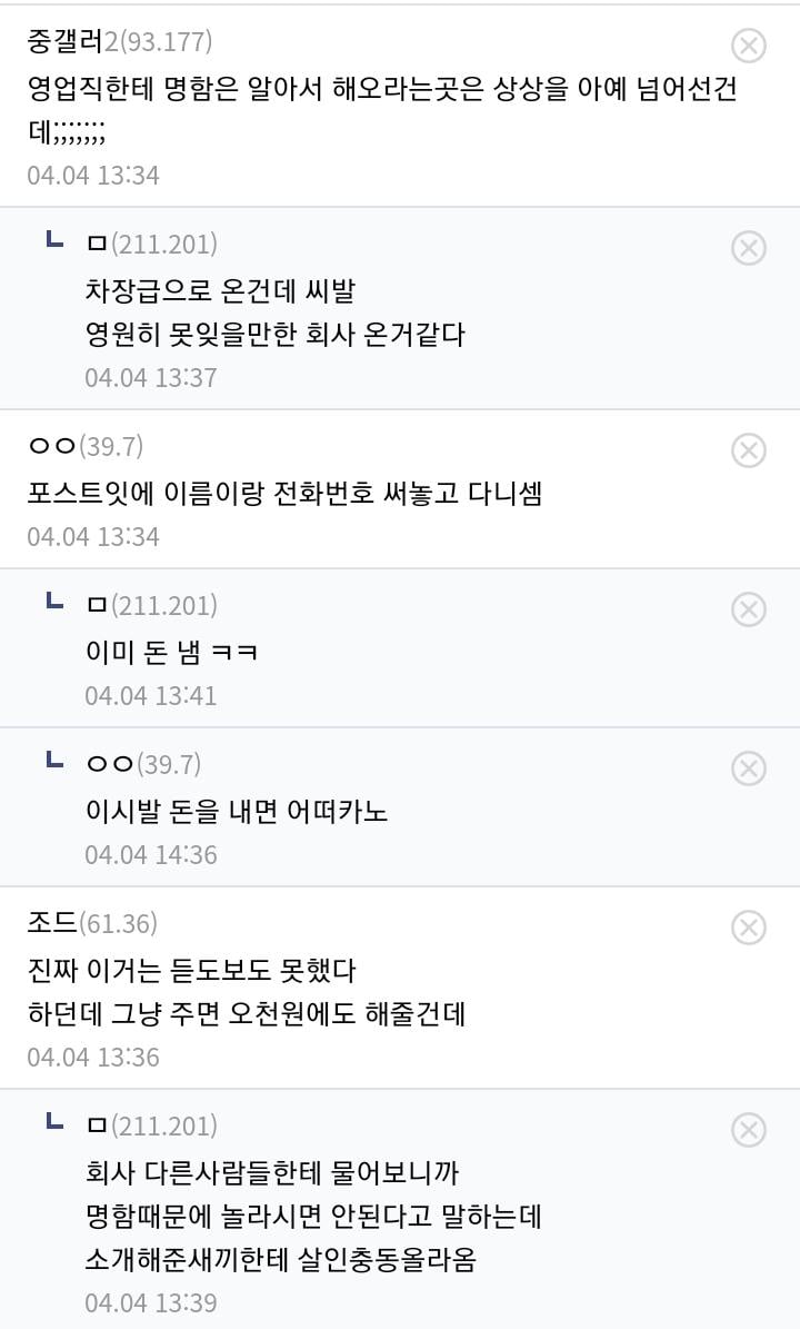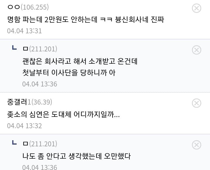 명함 만들어 달라고 했다가 한소리 들은 디시인