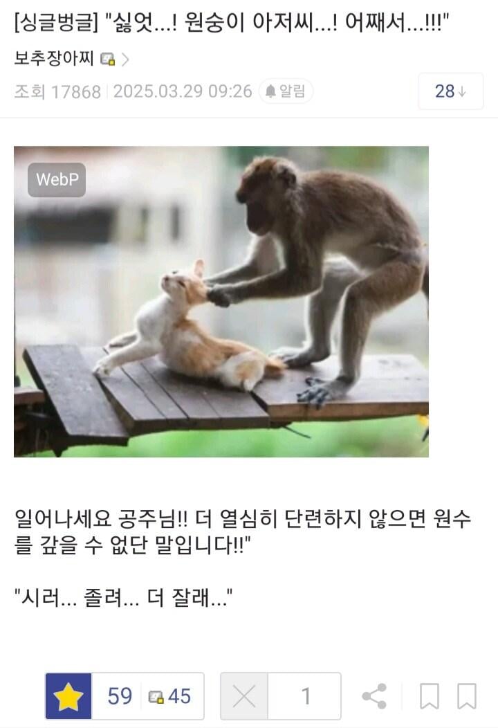 "싫엇...! 원숭이 아저씨...! 어째서...!!!"