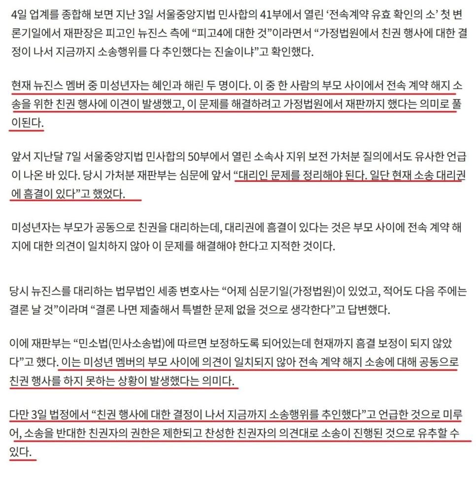 뉴진스 부모님 근황 rh1 0 256 0 2025.04.04 17:30 미성년 멤버 부모 중 한명이 어도어와의 소송까지는 안 된다고 의견이 갈렸는데.이걸 뉴진스 멤버와 찬성하는 부모가 친권 제한 소송을 걸어버려서 반대하는 부모의 대리인 의무를 정지 시키려고 함.반대하는 사람은 친권 정지까지 당했으니 같이 위약금 통나무 드는 시나리오는 회피한 것으로 보임. 0