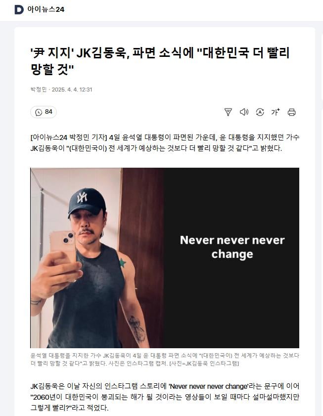 JK김동욱, 파면 소식에 "대한민국 더 빨리 망할 것"
