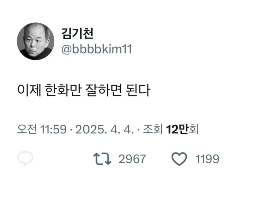 윤씨 탄핵 후 김기천 배우님 SNS
