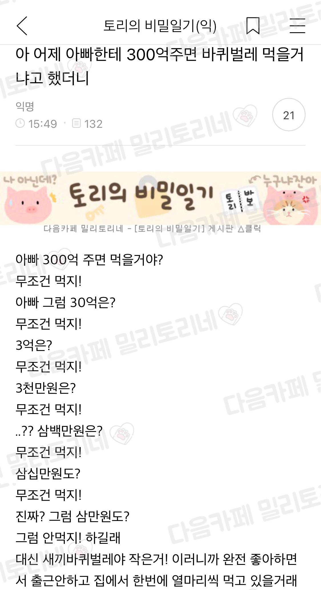아빠 300억주면 바퀴벌레 먹을거야?