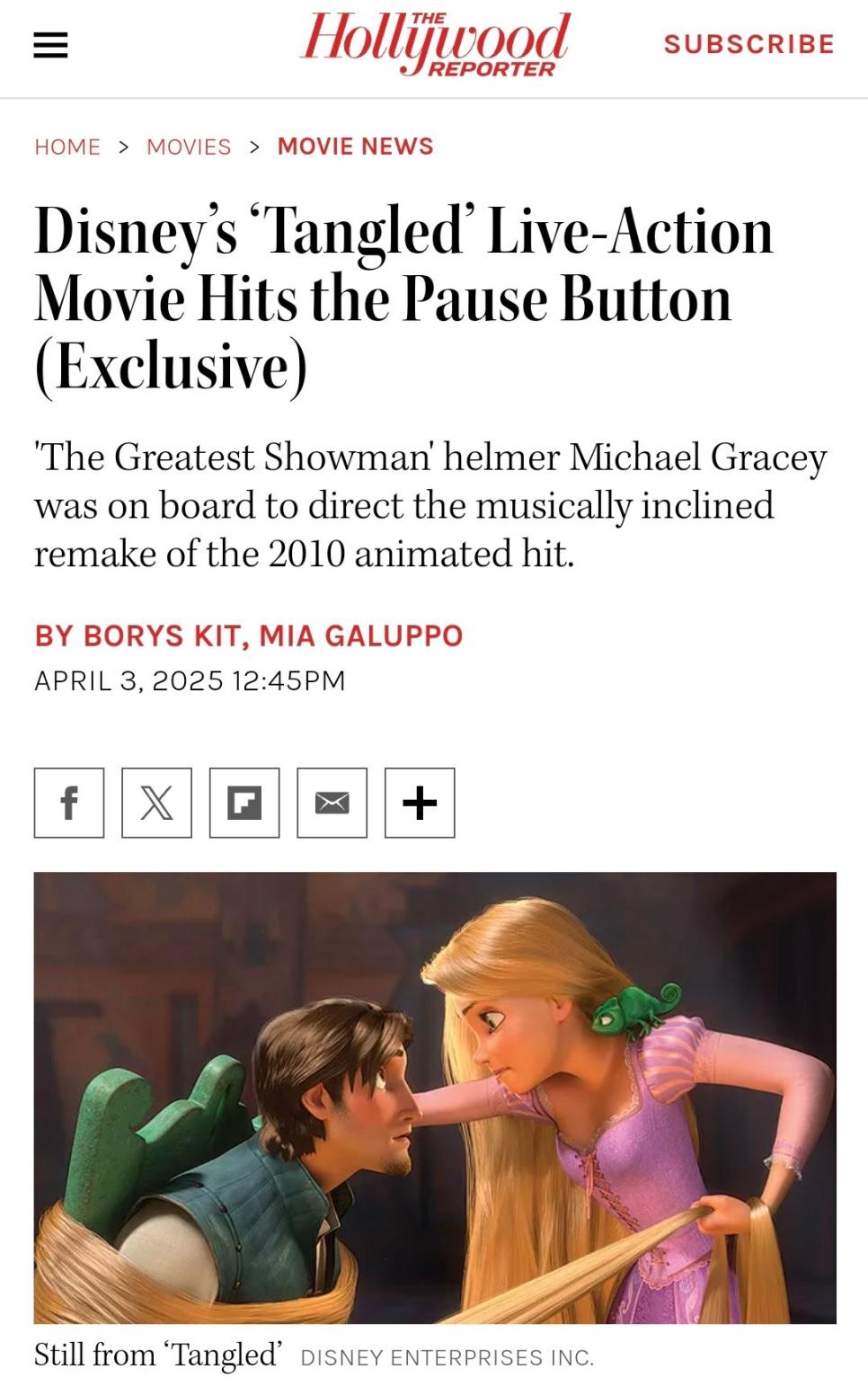 디즈니 [라푼젤] 실사화 중지