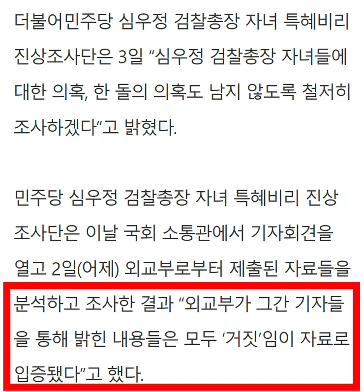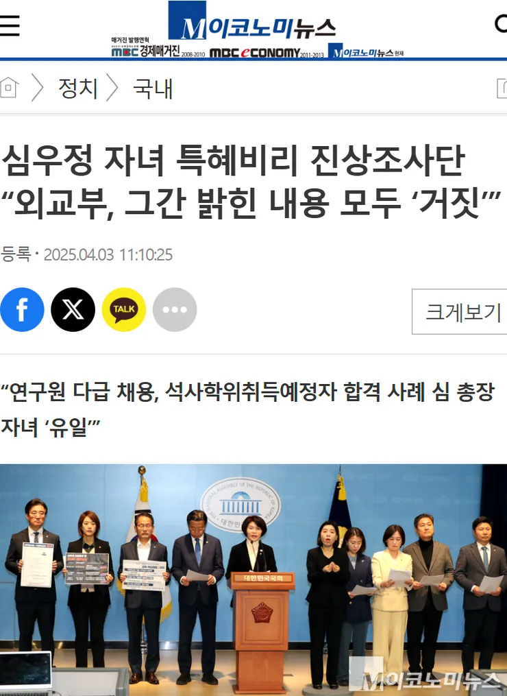 심우정 자녀 특혜비리 진상조사단 “외교부, 그간 내용 모두 거짓” rh1 0 238 0 2025.04.04 07:15 http://www.m-economynews.com/news/article.html?no=52856외교부가 대충 은폐하고 넘길려다제대로 딱 걸렸네요 0