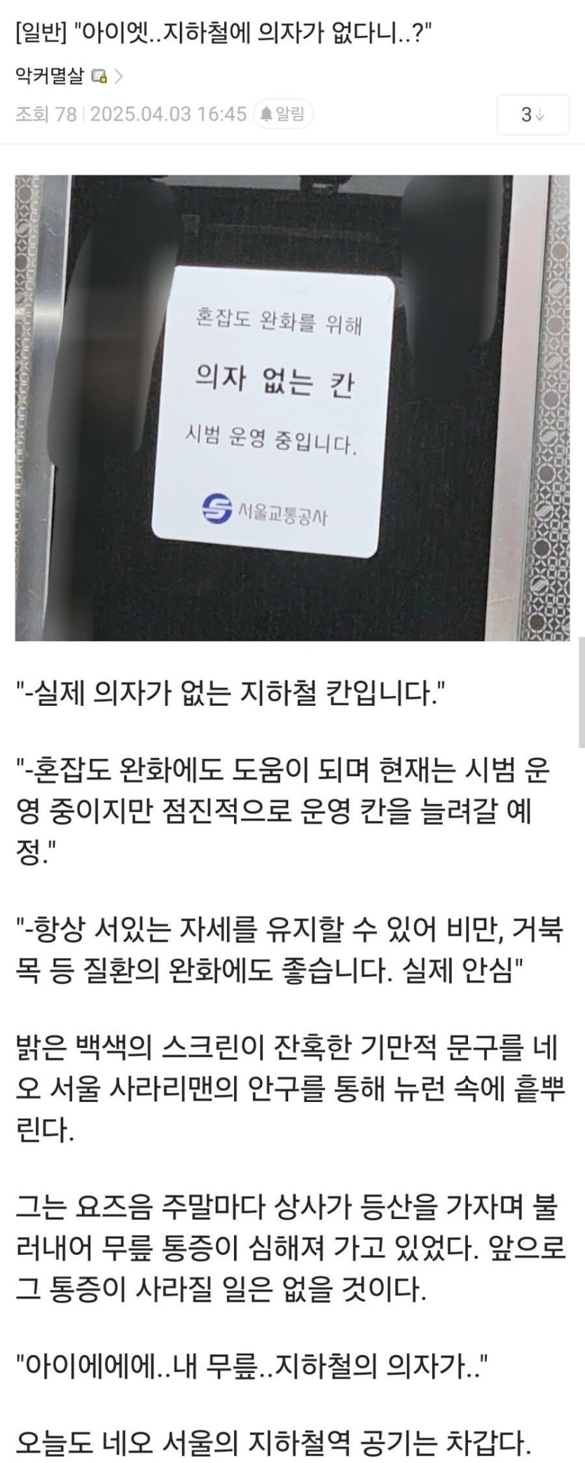 서울 지하철, "의자없는 지하철 늘린다" ㄷ..jpg