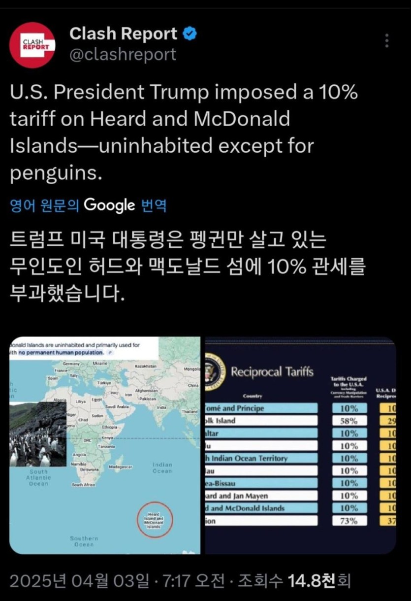 펭귄만 살고 있는 섬에도 관세 부과한 트럼프