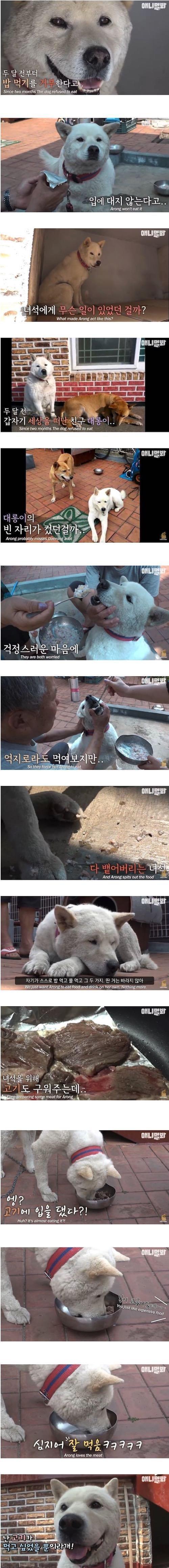 친구를 떠나보내 금식하는 개