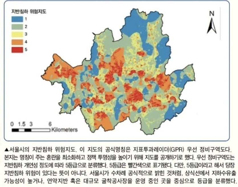 서울시의 해명으로는, 본 기사의 자료는 서울시가 관리하고 있는 지도가 아니며, 한국지반공학회 논문집 제40권 6호(2024년 12월)에 게재된 ‘AHP 기법 기반 지반침하 위험도 분석모델 개발’ 논문에 실린 지도로, ‘2024 서울재난안전포럼’에서 서울연구원에서 발표한 내용을 인용한 지도라고 합니다.