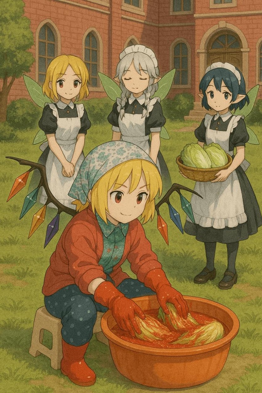 지피티야 씹덕 캐릭터가 김치 담그는거 그려줘