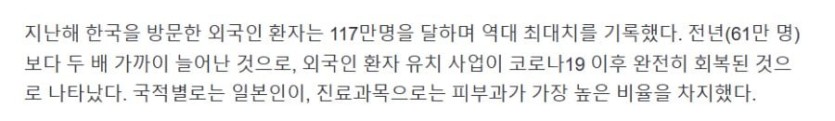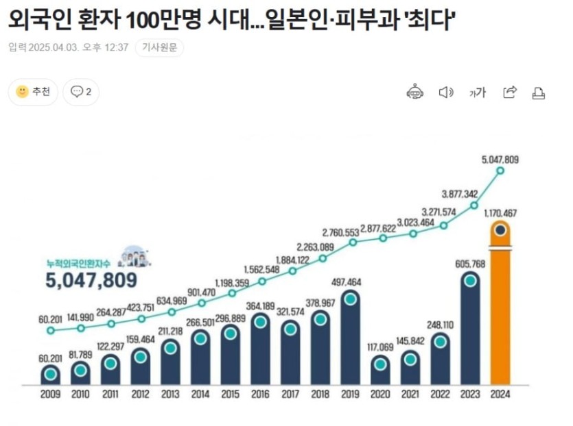 대한민국 외국인 환자 100만명 시대 rh1 0 292 0 2025.04.03 16:15 전년대비 2배 가까이 늘음 외국인환자 이것도 돈 엄청 될건대요.. 강남에 외국인환자가 그렇게 많다더군요.. 대한민국 외국인 환자 100만명 시대 0
