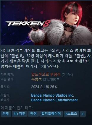 철권8 시즌2 시작 2일차 스팀 평가 근황.jpg