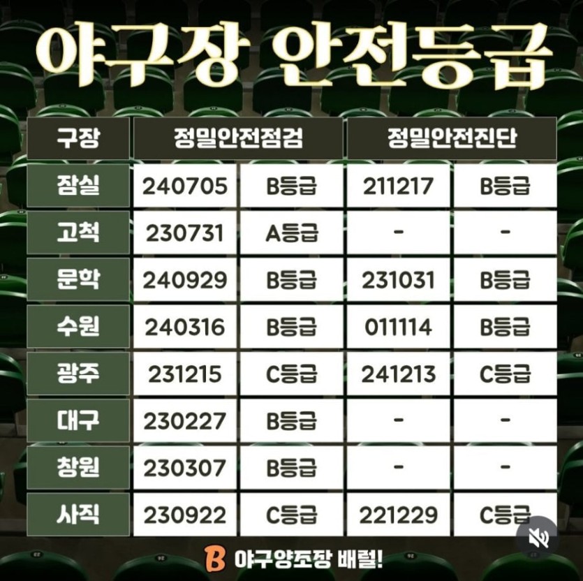 대한민국 야구장 안전등급
