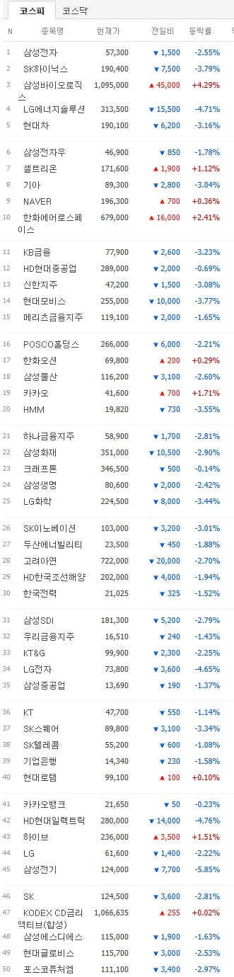 시가총액 상위 50위 주식 근황