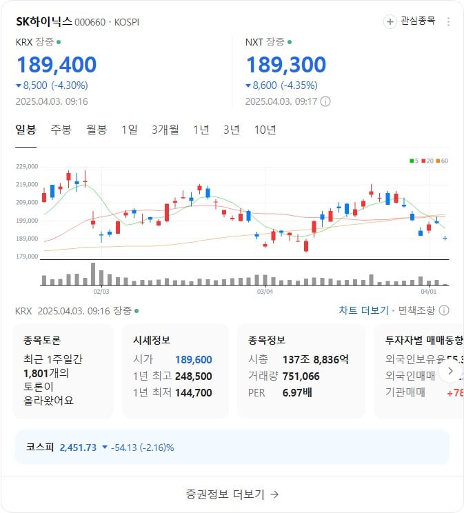 현재 국내 주식 상황