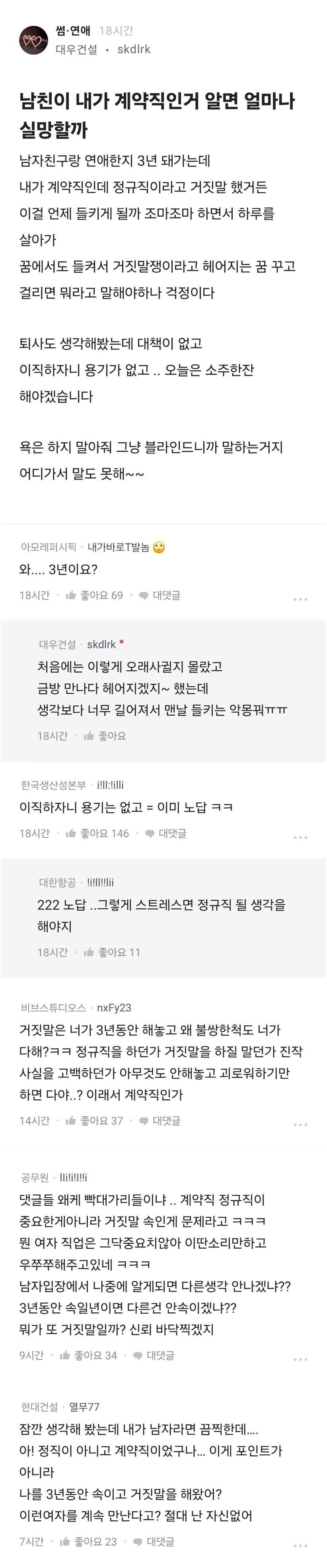 3년간 남친에게 계약직인걸 숨긴 블라녀 ㄷㄷㄷ .jpg