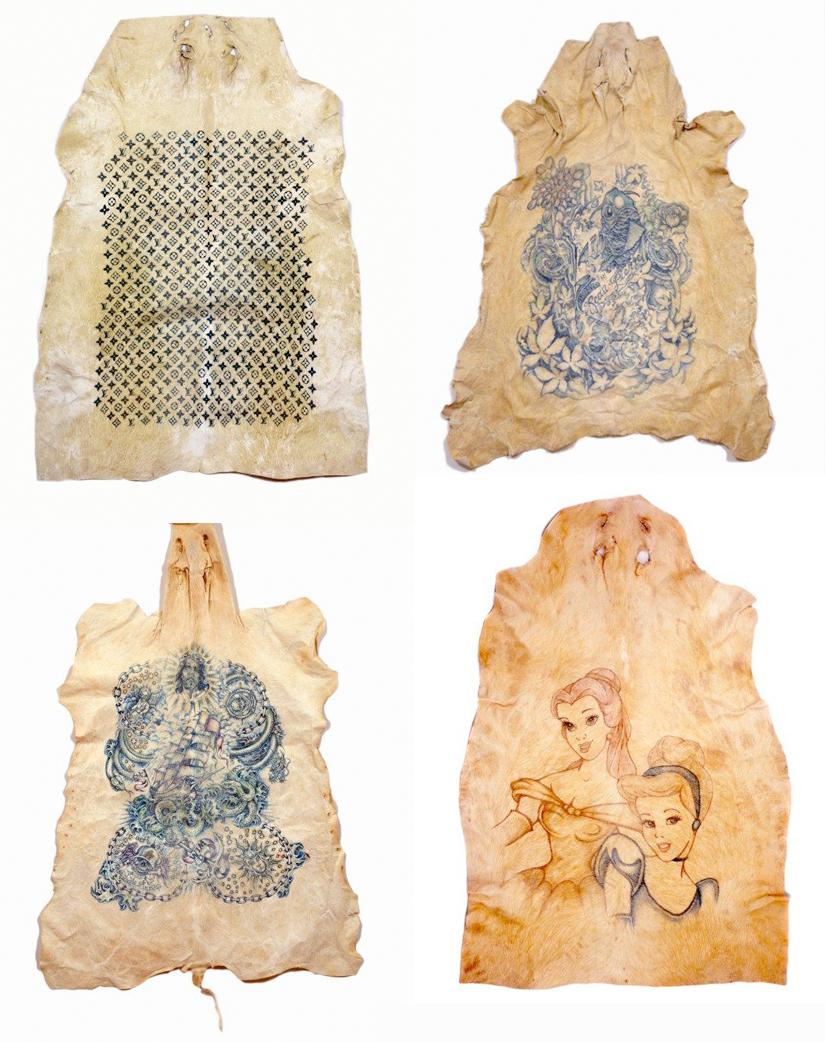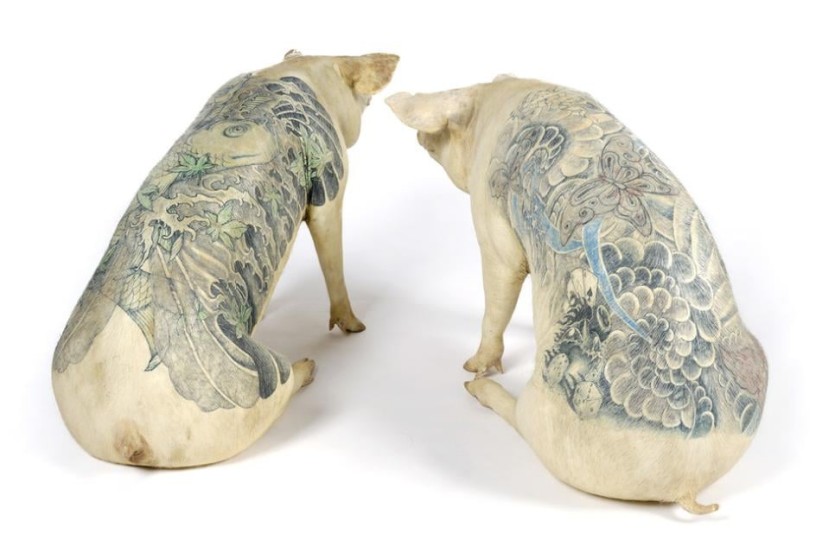 벨기에 예술가인 윔 델보예(Wim Delvoye)는 돼지 피부에 문신을 새기는 예술을 활동을 한다. 윔 델보예가 돼지 등에 유명 명품 브랜드 로고 문신을 새겨 주목을 받은 이후, 독일에서 동물 문신이 유행하기 시작하면서 이에 대한 반발이 일어났다. 독일에서 동물 문신이 성행하면서 법원이 동물보호법에 위반된다는 이유로 동물 문신 금지명령을 내렸다. 이후 뎀보예는 독일에서 동물에게 문신을 하지 못하고 중국으로 진출했다. 중국 베이징에 있는 한 돼지 농장은 주말이면 독특한 돼지들을 보려고 찾아온 방문객들로 붐빈다. 벨기에 예술가 윔 델보예의 문신 돼지를 보기 위해서다. 델보예와 제자들은 돼지들의 피부에 독수리나 해골 등을 새기거나 명품 브랜드 루이비통의 독특한 로고를 돼지의 머리부터 꼬리까지 빽빽이 수놓기도 했다. 이렇게 문신이 새겨진 돼지가죽은 최대 5,500파운드(약 9,100만원)에 거래되고 있다. 명품 브랜드 샤넬은 이 돼지가죽으로 가방을 만들어 판매한 것으로 알려졌다. 일부 동물보호 운동가들은 이에 대해 동물들이 상업적 목적 때문에 불필요한 고통을 받고 있다고 비난하고 있다. 델보예는 “무엇이 예술인가를 판단하는 잣대를 들이대는 건 애초부터 적절하지 않다.”고 강력하게 주장하면서 “일부 주장과는 달리 돼지들이 문신 시술 당시 피부에 마취를 했기 때문에 특별히 고통을 느끼진 않는다.”고 반박했다.